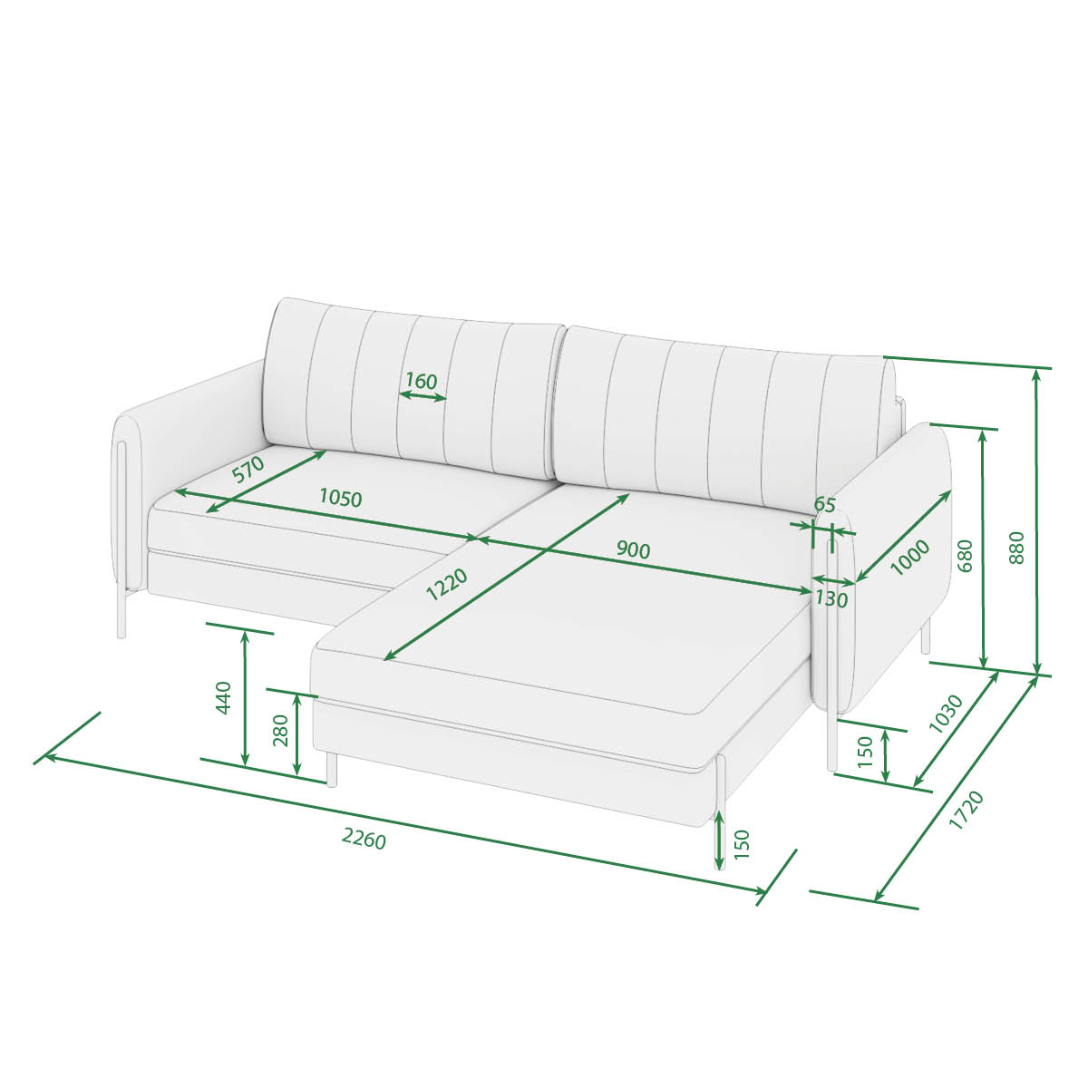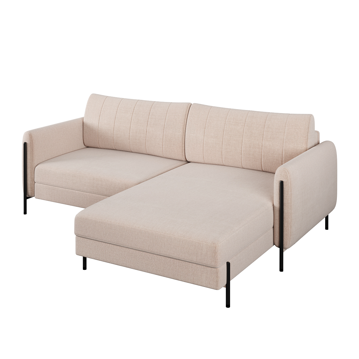 Металлические опоры гладко переходят в декоративный элемент, что придает акцент дивану и неповторимый эффект легкости. Высота опор - 14,5 см. Это позволяют применить современные технологии уборки, например, робот-пылесос. Цвет черный или белый.