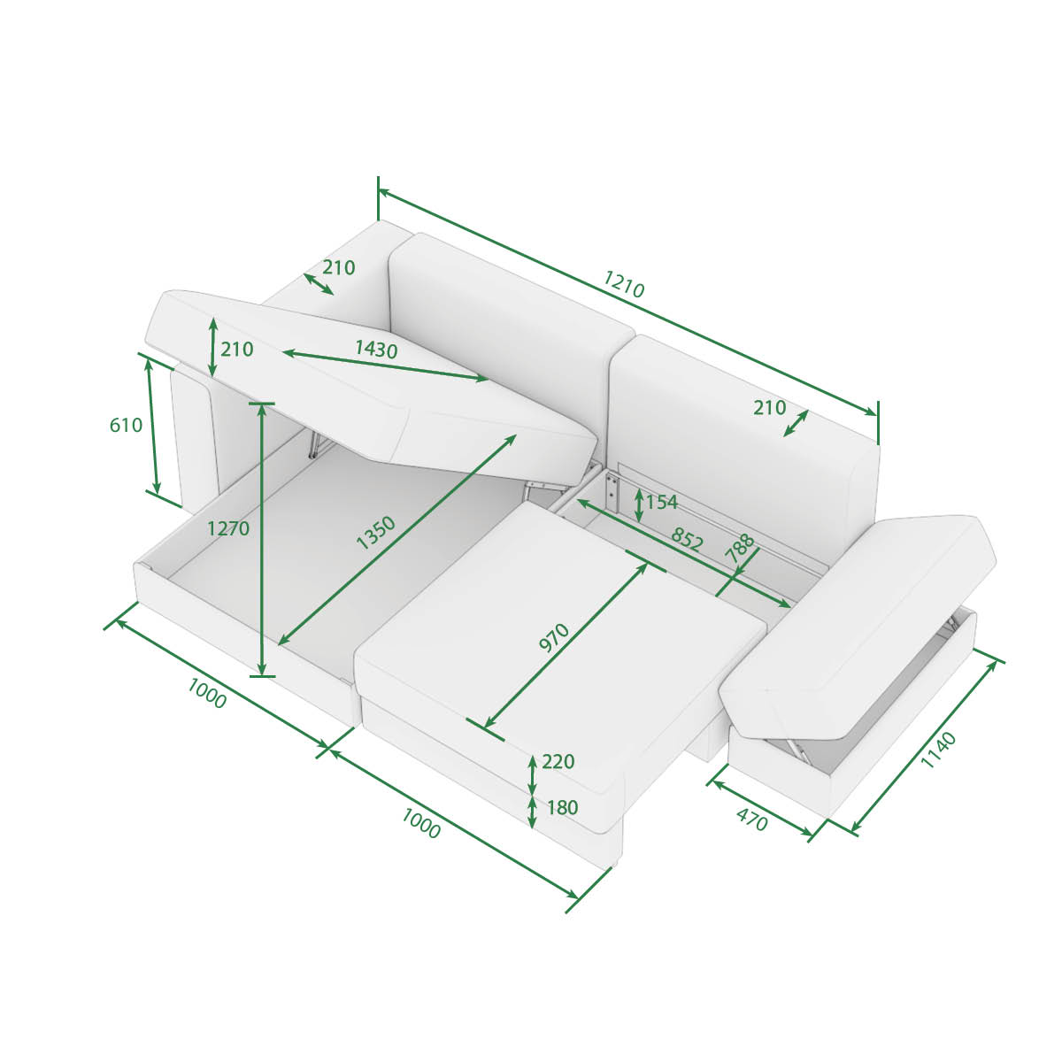 Наполнение сиденья и спального места: Высокопрочный и высокоэластичный ППУ, пена с эффектом памяти Метory foam, синтепон, блок независимых пружин Рocket Spring.