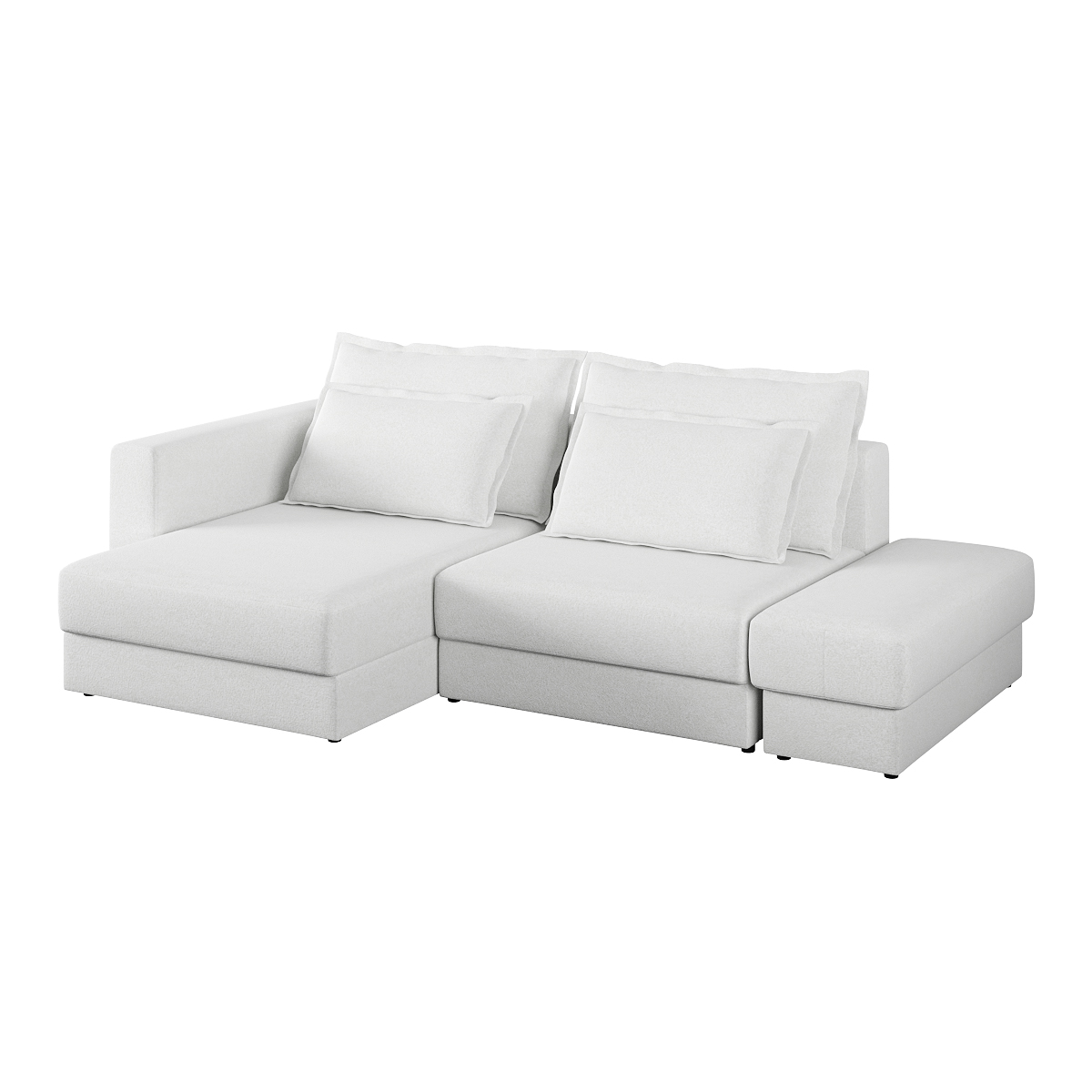 Модульная композиция дивана Тана ориентирована на полноценный отдых. Шезлонг с местом для хранения позволяет удобно расположиться и рационально использовать пространство. Большой пуф дополняет посадочную зону и расширяет сценарии использования. Подходит для отдыха, чтения и спокойных вечеров.