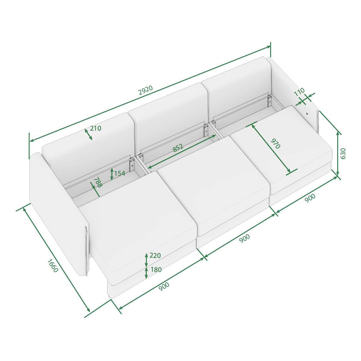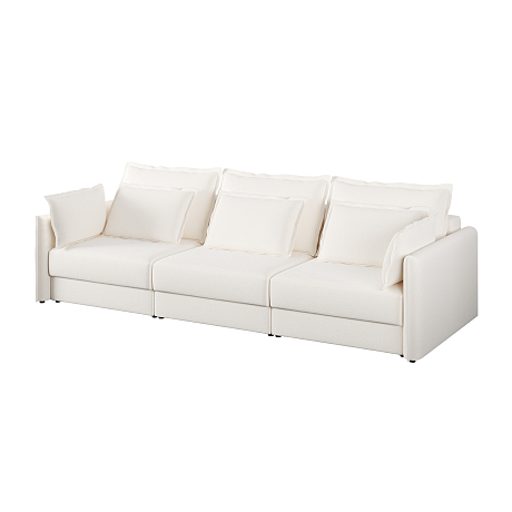 Увеличенная прямая конфигурация дивана Тана рассчитана на просторные интерьеры. Три диванные секции формируют комфортную зону для нескольких человек. Мягкие подушки сохраняют ощущение уюта даже при больших габаритах. Отличный вариант для семейного отдыха и приёма гостей.