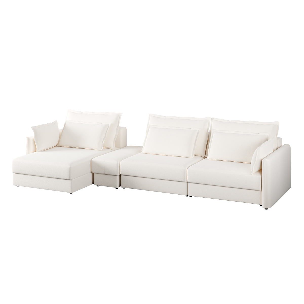 Угловая композиция дивана Тана объединяет функциональность и комфорт. Шезлонг с местом для хранения и дополнительный пуф делают зону отдыха максимально удобной. Модульная структура позволяет эффективно организовать пространство. Подходит для ежедневного использования и расслабленного отдыха.