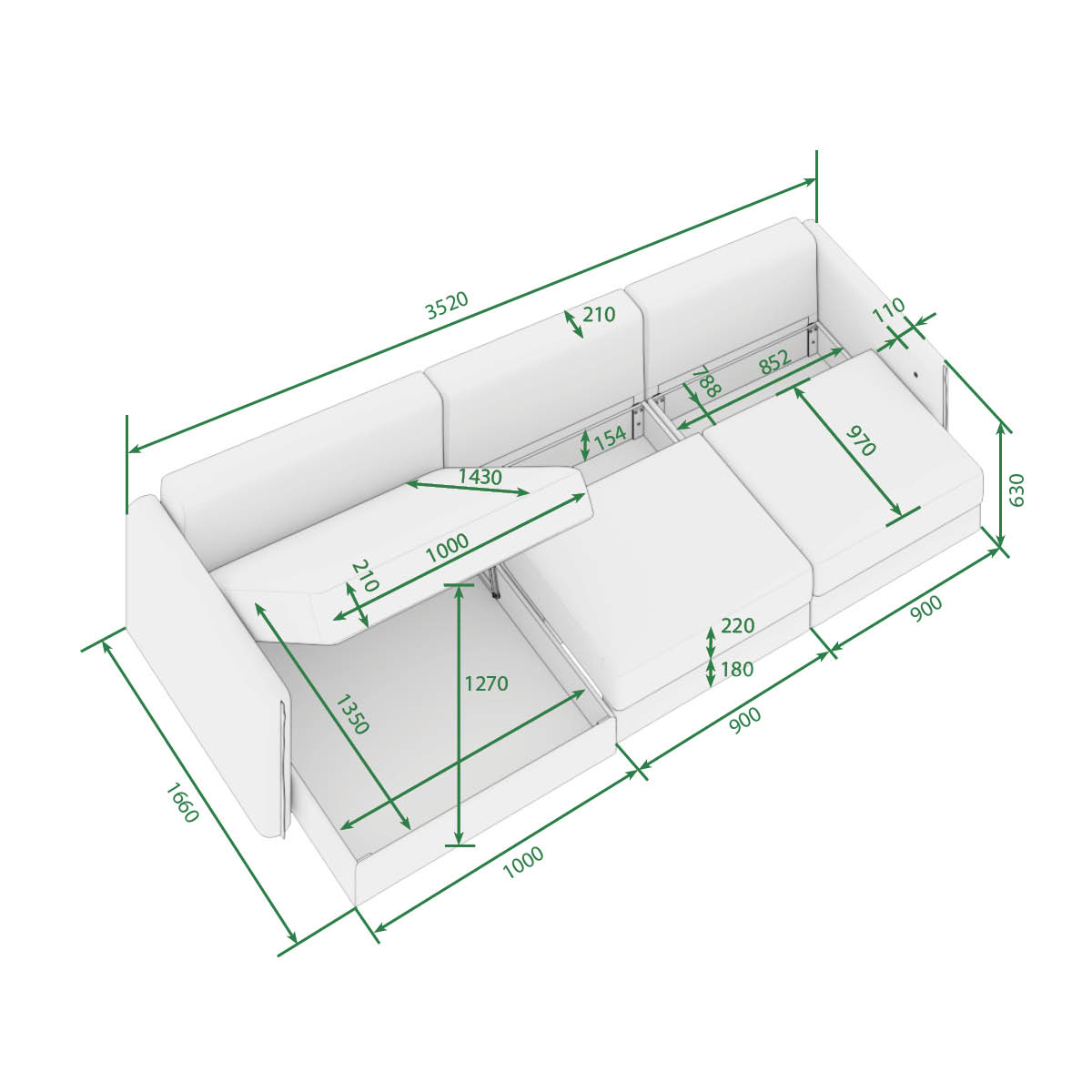Размеры: 630х3020х1660 мм.