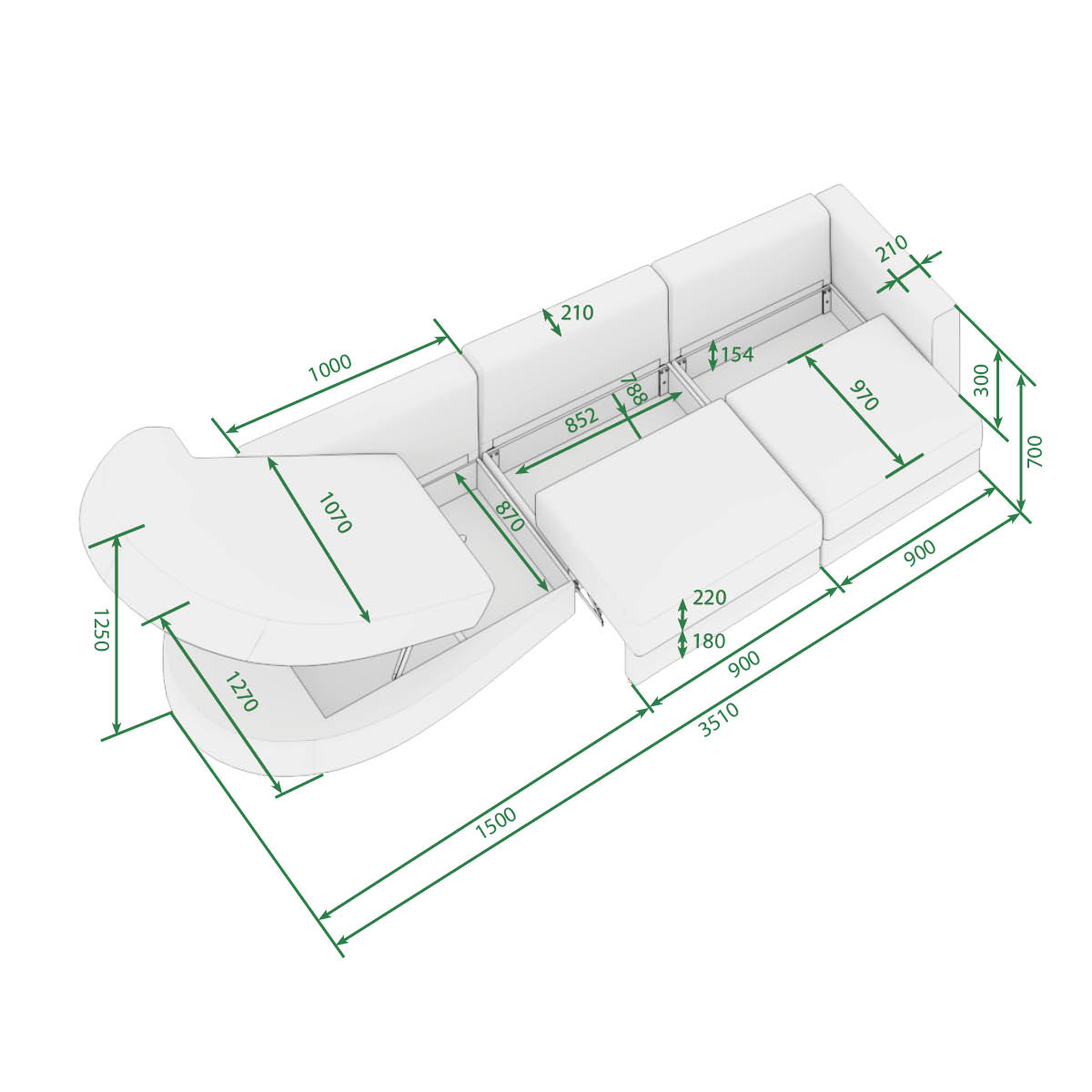 Наполнение сиденья и спального места: Высокопрочный и высокоэластичный ППУ, пена с эффектом памяти Метory foam, синтепон, блок независимых пружин Рocket Spring.