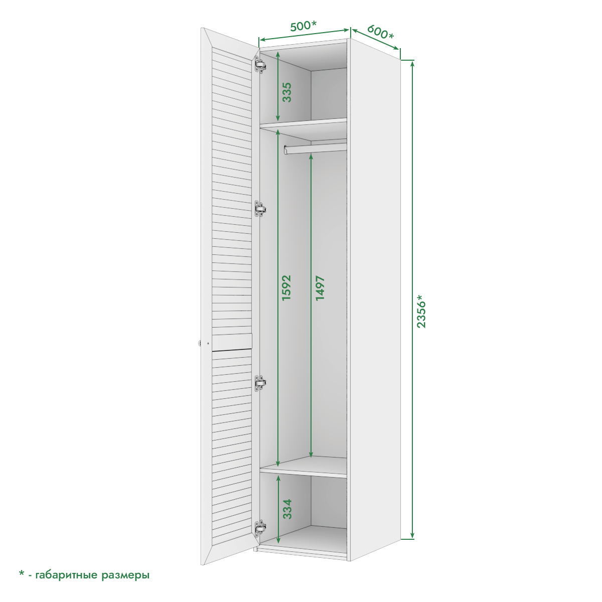 Размеры: 2356х500х600 мм.