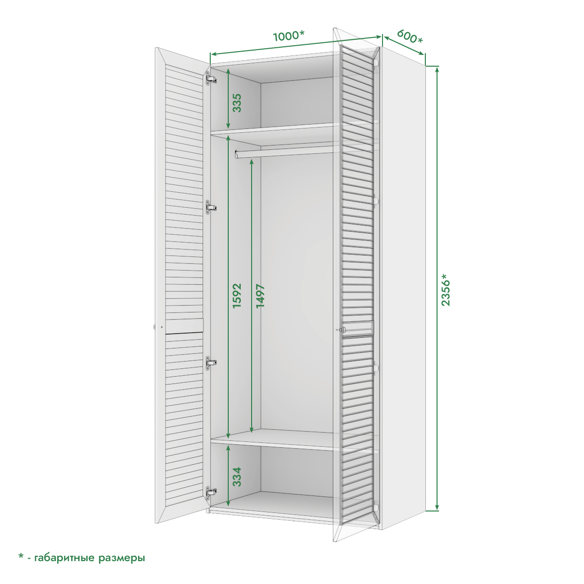 Размеры: 2356х1000х600 мм.